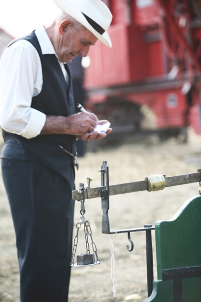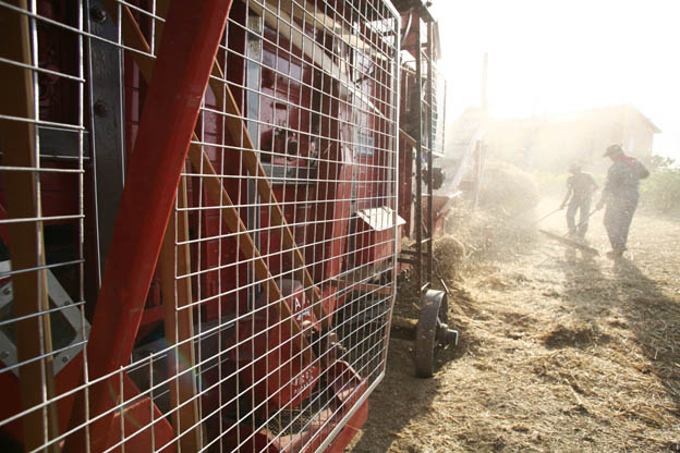 Un gruppo di operai contraddistinti da un fazzoletto rosso avvolto intorno al collo, chiamati “macchinisti” o “motoristi”, addetti alla conduzione della trebbia, iniziavano le operazioni di smontaggio della macchina, per poterla trasportare presso il contadino vicino e riprendere tutto il giorno successivo, tutti i giorni,senza sosta, per circa 40 giorni.