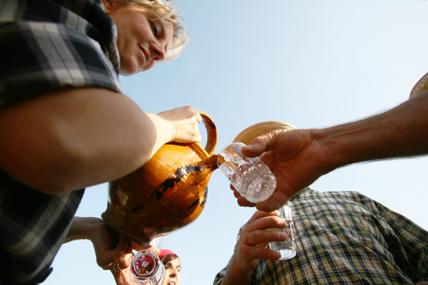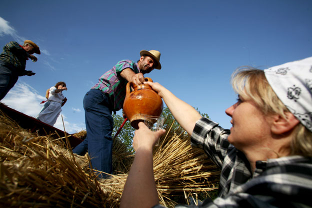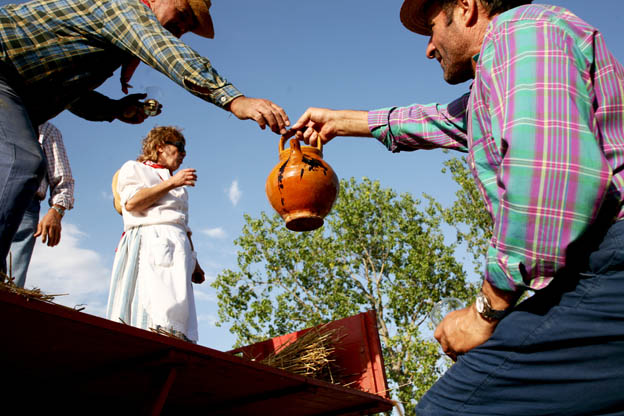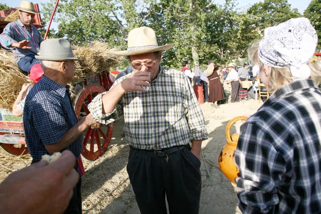La trebbia era sempre operativa, le soste venivano fatte a turni, durante la giornata ad intervalli regolari, una o più persone, assegnate a queste mansioni, passavano tra i lavoratori, portando loro vino e acqua.