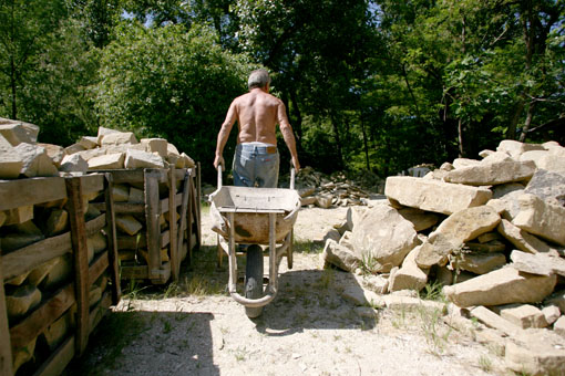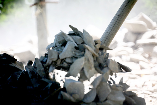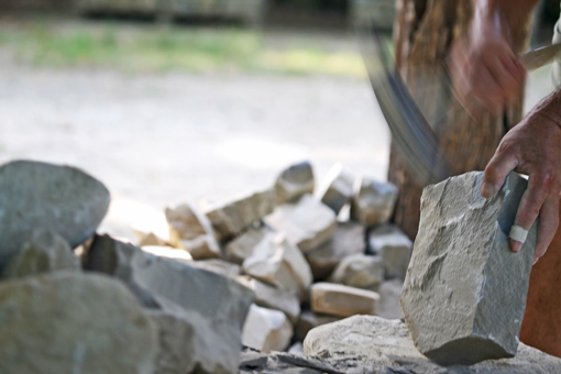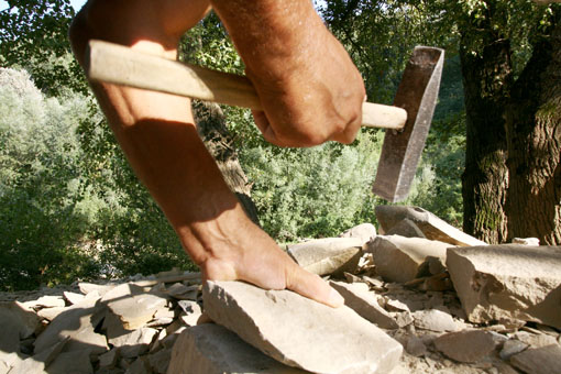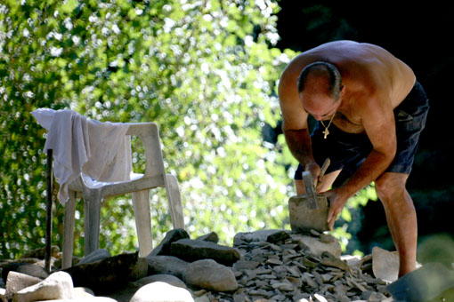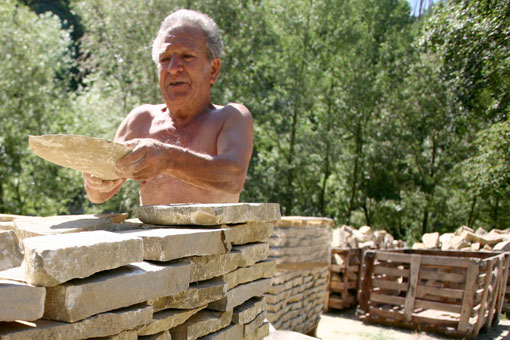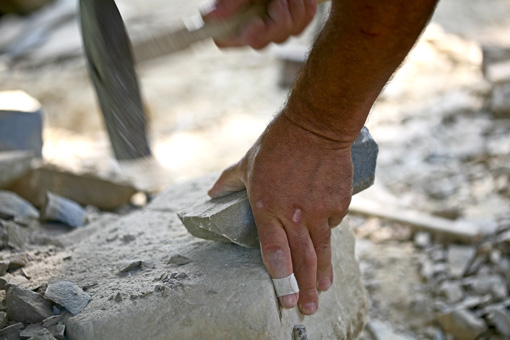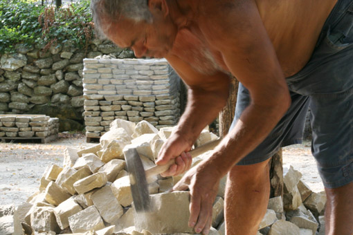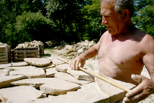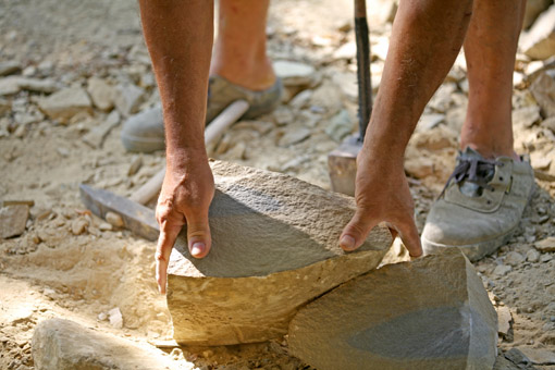 La pietra da lavorare non proviene più dal fiume, per i divieti che sono sopraggiunti nel tempo.