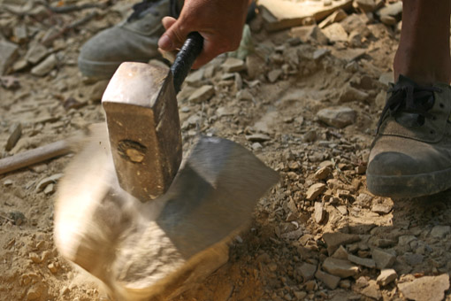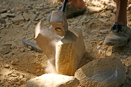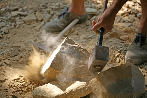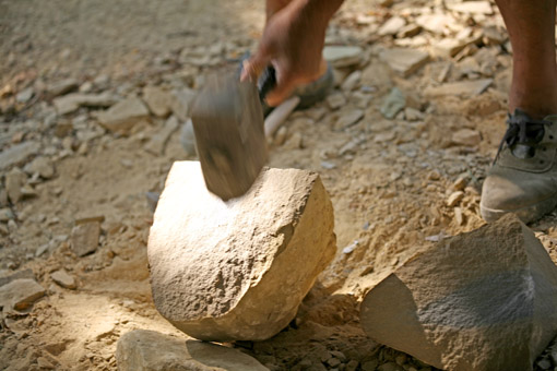 Il selcino viene lavorato con una mazza e un martello come nei tempi più remoti. L’unica innovazione è il rinforzo di widia ( sostanza durissima a base di carburo di tungsteno, commercializzato in placchette ), saldata sia sull’angolo del martello che sulla mazza.